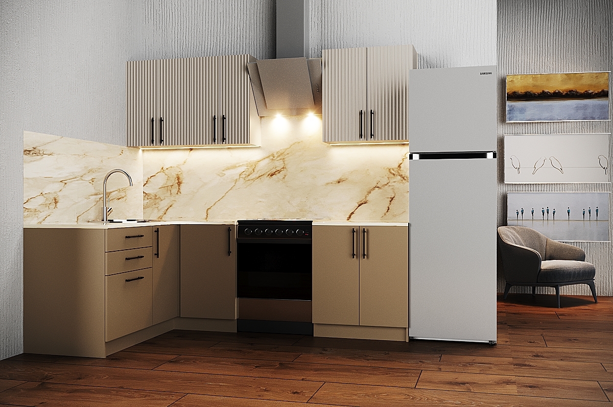 Столешница, толщиной 38 мм, выдерживает регулярные нагрузки и представлена в вариантах каррарского мрамора, бежевого мрамора и инновационного Лунного металла. Гарнитур произведен Группой компаний кухни, чей опыт и внимание к деталям гарантируют высокое качество и стильный дизайн. Этот гарнитур станет настоящим украшением вашей кухни, добавляя в нее утонченность и комфорт.